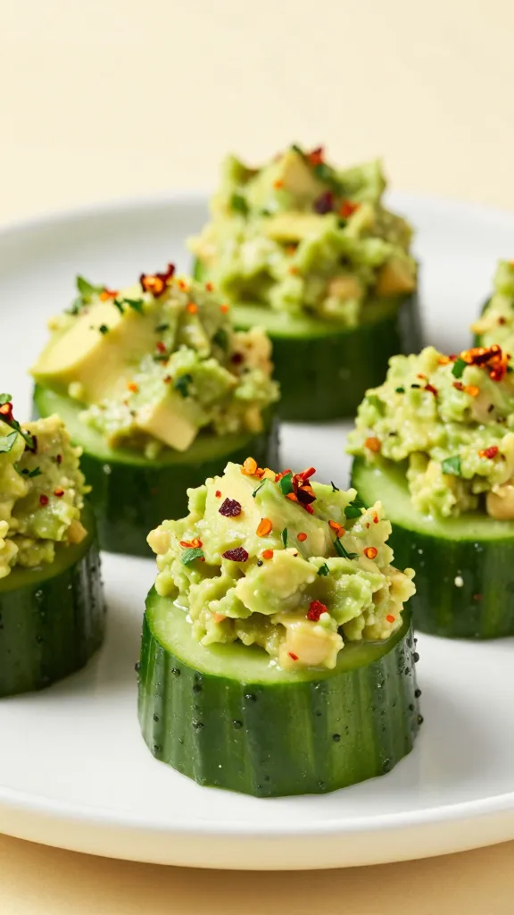 - Southwestern twist: guacamole with corn, black beans, and cilantro—serve on cucumber rounds.